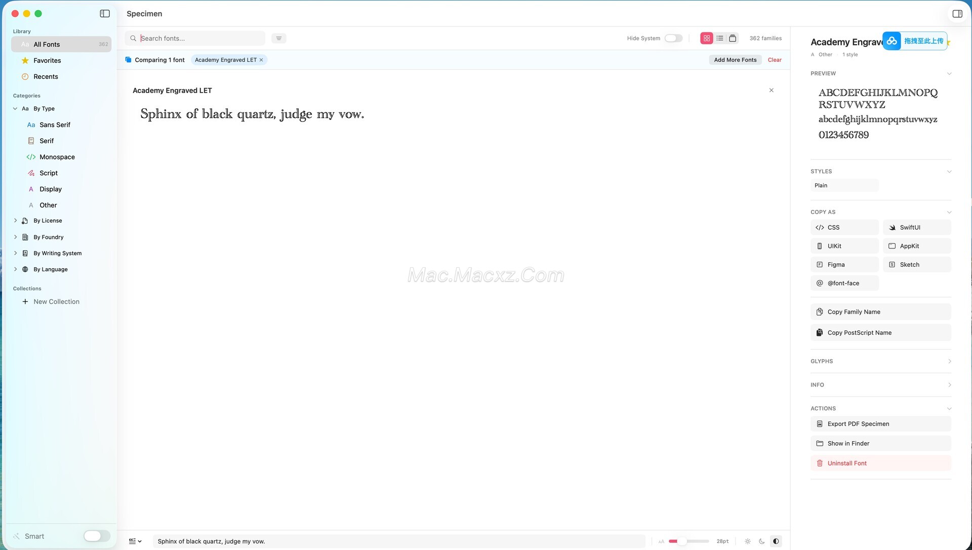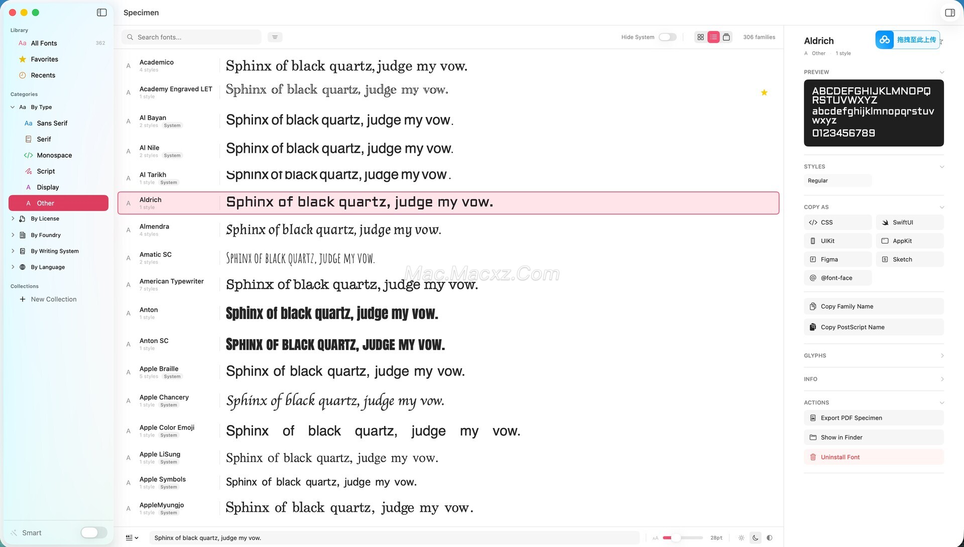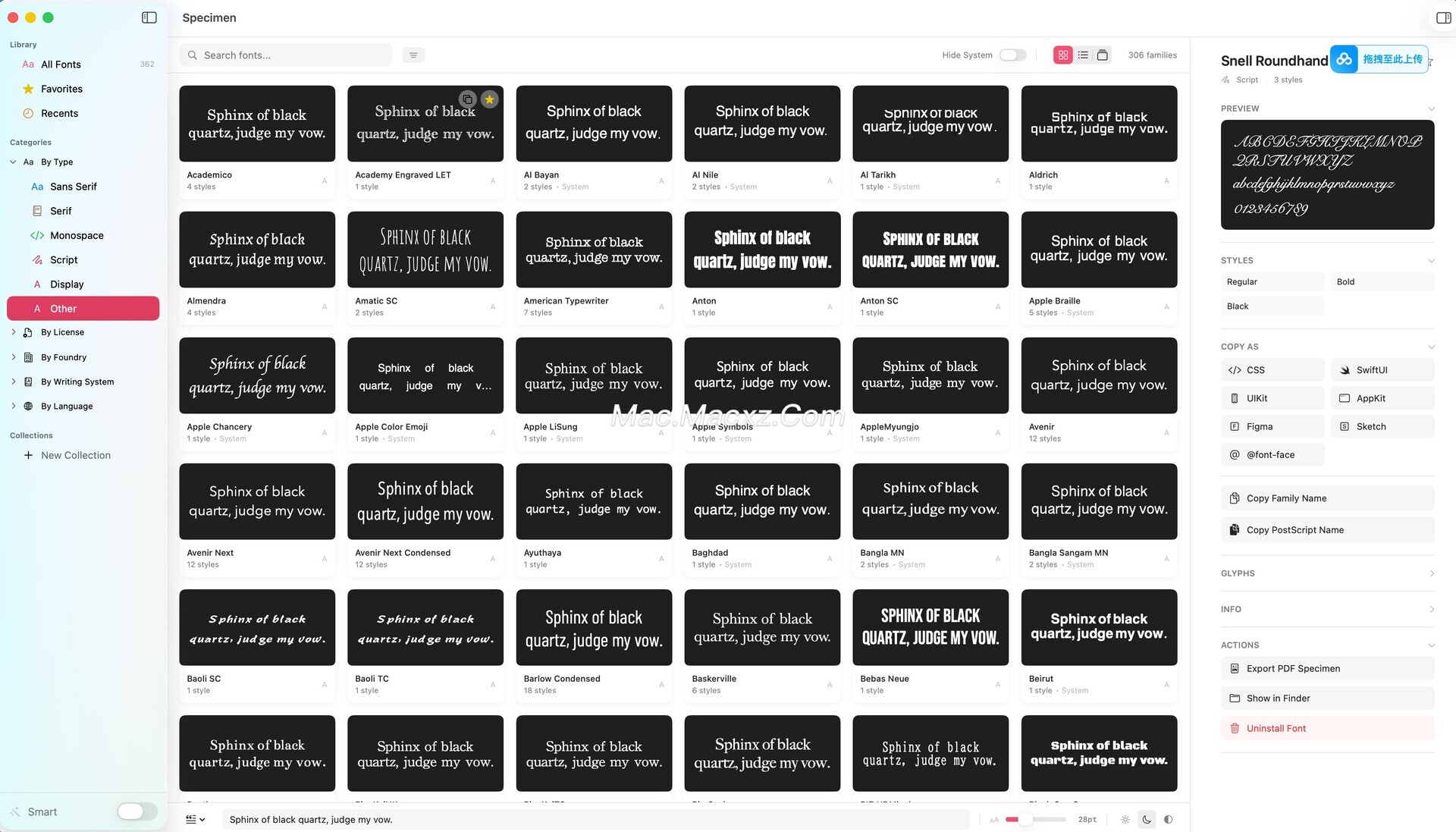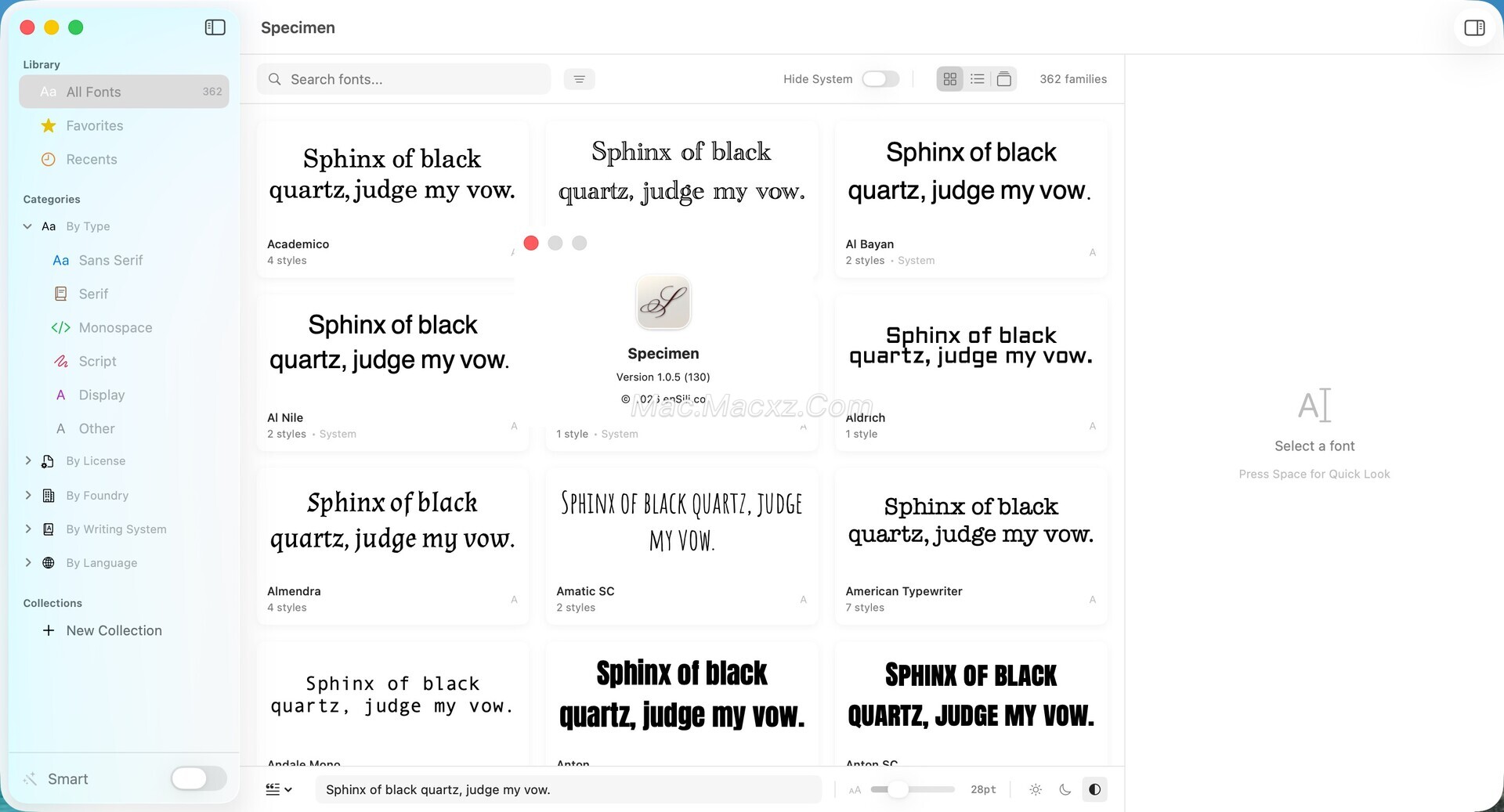 Specimen 是一款专为 macOS 设计的字体管理工具,主要面向设计师、排版工作者以及字体爱好者。随着设计项目中字体数量不断增加,如何高效浏览、整理和选择字体成为许多 Mac 用户面临的问题。Specimen 提供了一套完整的字体管理解决方案,用户可以在一个界面中浏览、筛选、比较并管理系统中的字体资源。软件支持多种字体预览方式,并允许用户通过语言、字体类型、字库来源或许可证类型进行筛选,使字体查找更加高效。通过直观的界面和强大的字体浏览能力,Specimen 能够帮助用户更清晰地了解每个字体的结构和特性,从而在设计项目中快速找到合适的字体方案。